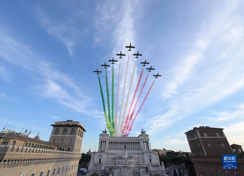 2月3日,意大利“三色箭”飛行表演隊(duì)噴出象征國(guó)旗三色的煙霧飛過(guò)羅馬上空,慶祝意大利總統(tǒng)馬塔雷拉就職。