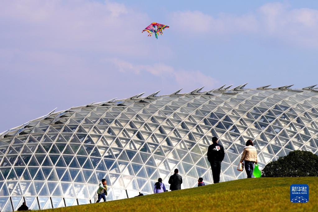 2月4日,游客在上海辰山植物園游玩。