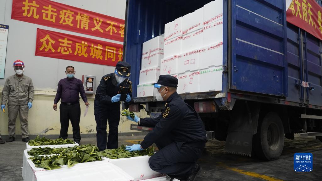 2月18日,番禺海關關員在檢查供港蔬菜。新華社發