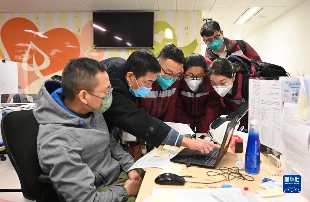 2月20日,內(nèi)地專家組在特區(qū)政府衛(wèi)生署代表陪同下到訪檢疫中心工作小組,了解特區(qū)政府在檢疫隔離方面的工作。新華社發(fā)