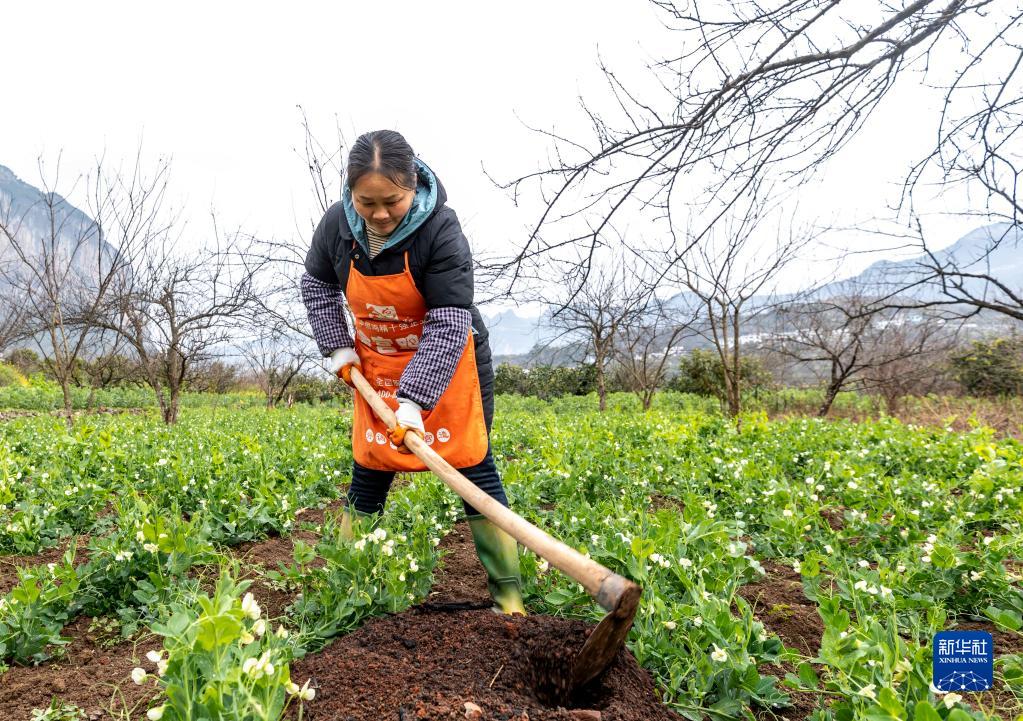 2月21日,村民在貴州省黔西市關大鎮丘林村的地里勞作。
