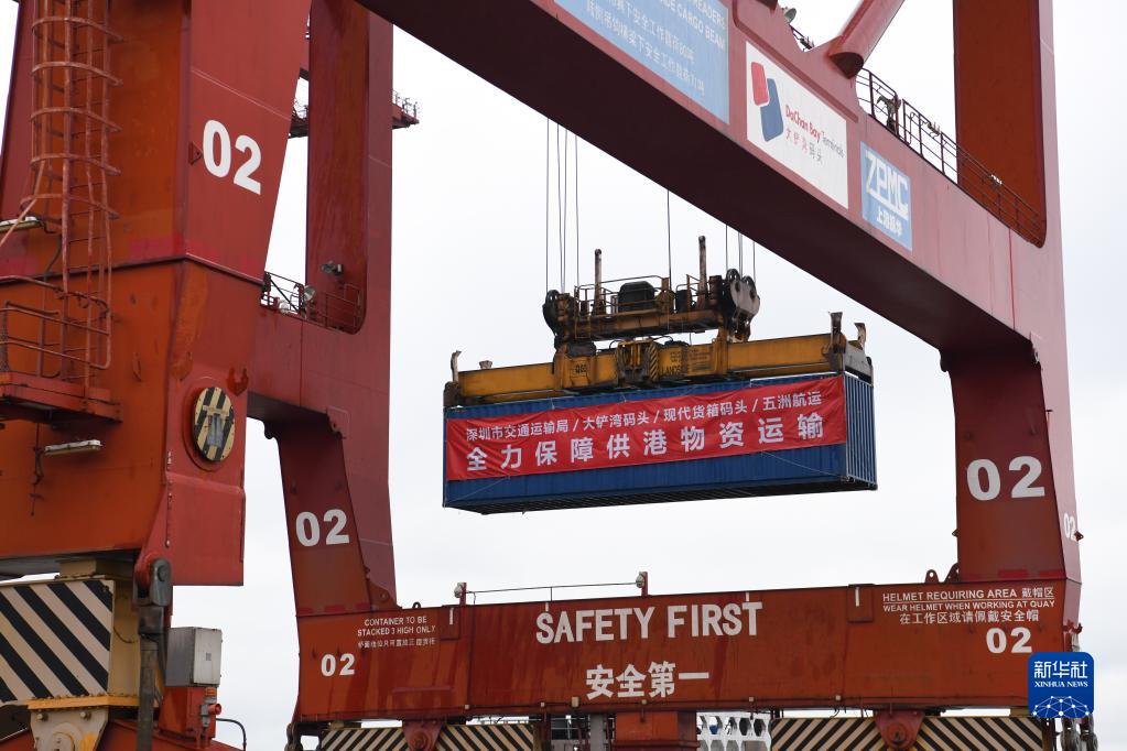 當日,深圳港大鏟灣、媽灣、鹽田集裝箱港區全面開通供港物資水路運輸快速通道,優化流程、提升效率,全力保障香港同胞生活物資供應。