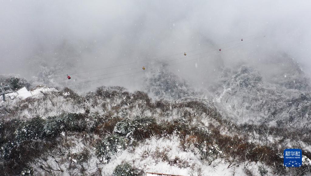2月20日,游客乘坐纜車在龍頭山景區(qū)游覽(無(wú)人機(jī)照片)。