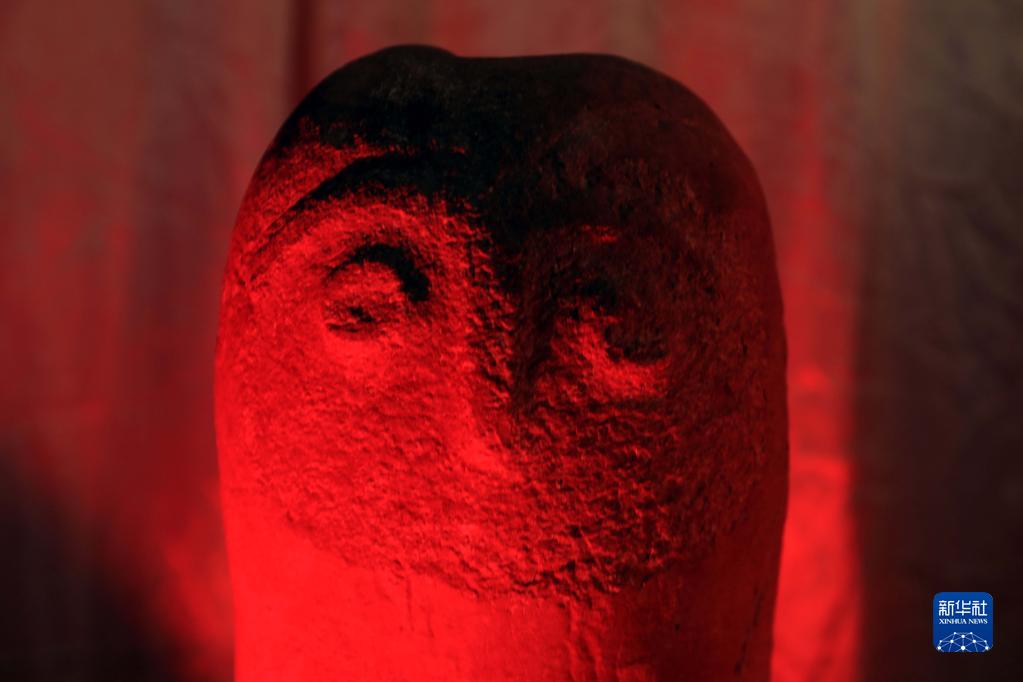 這是2月22日在約旦首都安曼拍攝的雕刻著精細的人物形象的石碑。