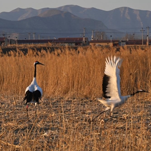 山西廣靈飛來丹頂鶴
