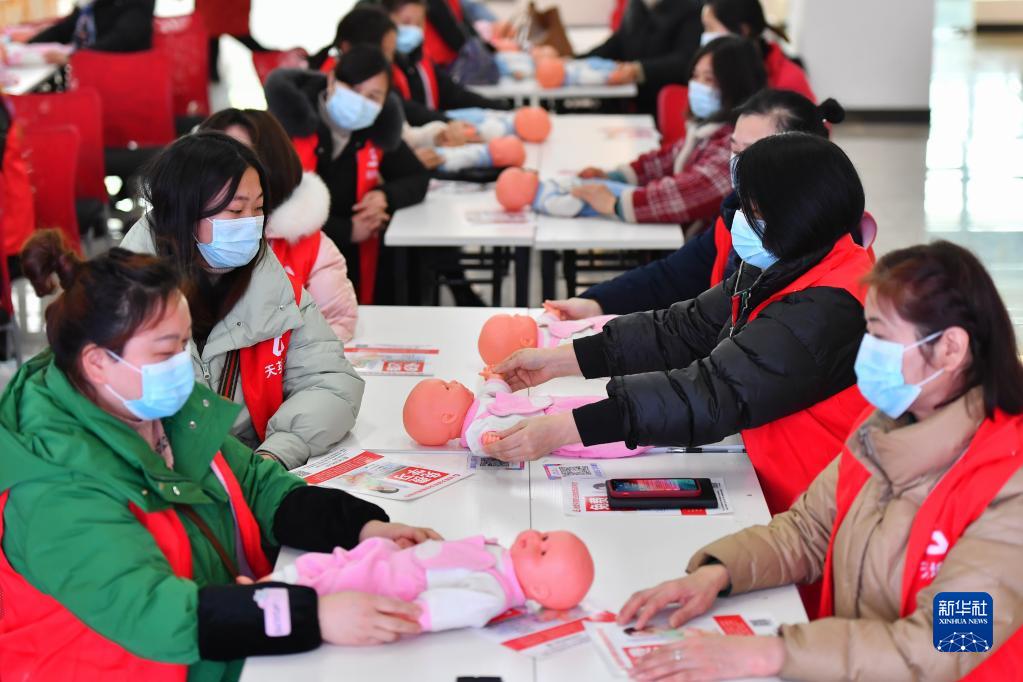 2月24日,在湘潭市雨湖區(qū)人力資源和社會(huì)保障服務(wù)中心,學(xué)員在育嬰員培訓(xùn)班上學(xué)習(xí)育嬰知識(shí)。
