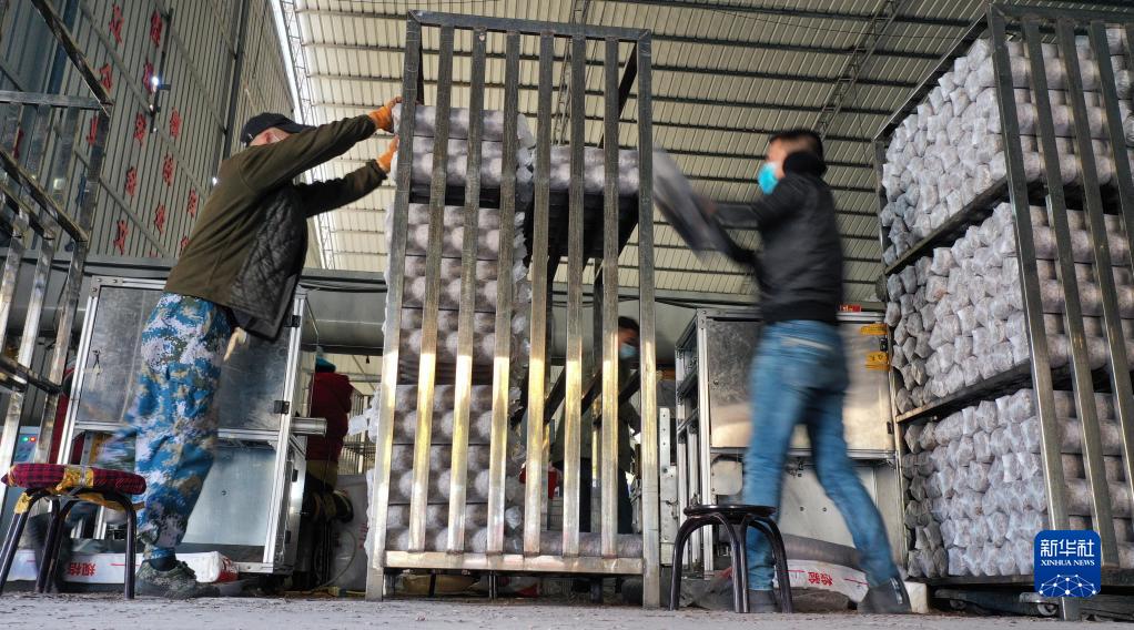 2月24日,留壩縣武關驛鎮一家農業科技公司的員工在食用菌包生產車間內忙碌。