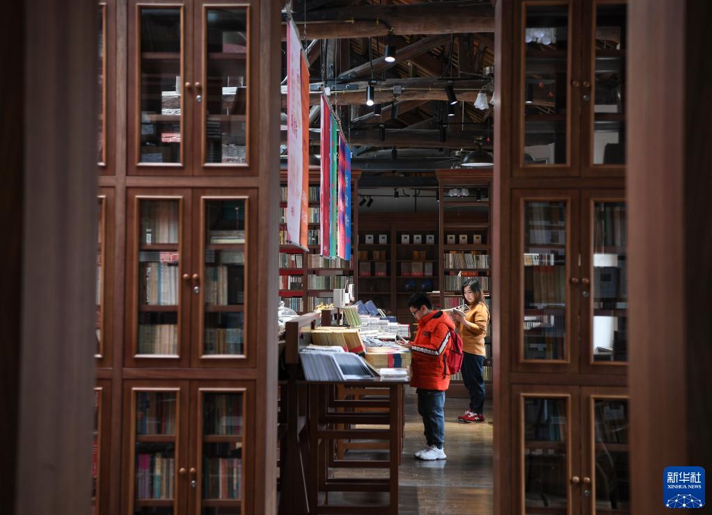 2月26日,游客在重慶山城巷一間用學校舊址改造成的圖書館內閱讀。