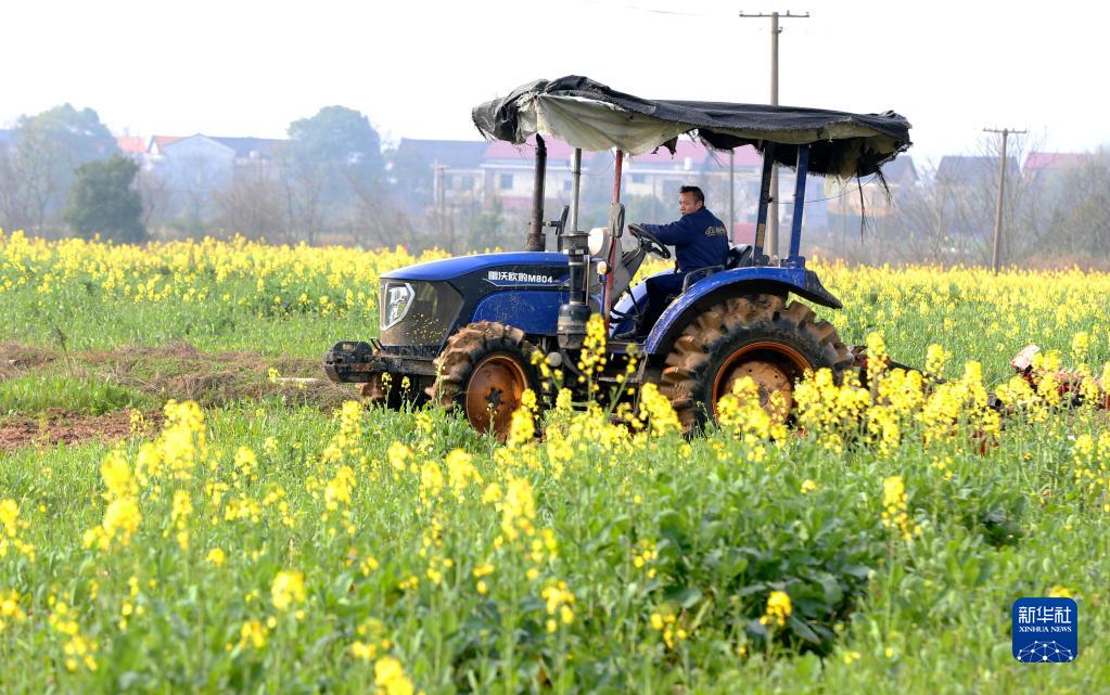 2月27日,在湖南省衡陽市珠暉區(qū)東陽渡街道高栗村,村民駕駛農(nóng)機翻耕稻田。