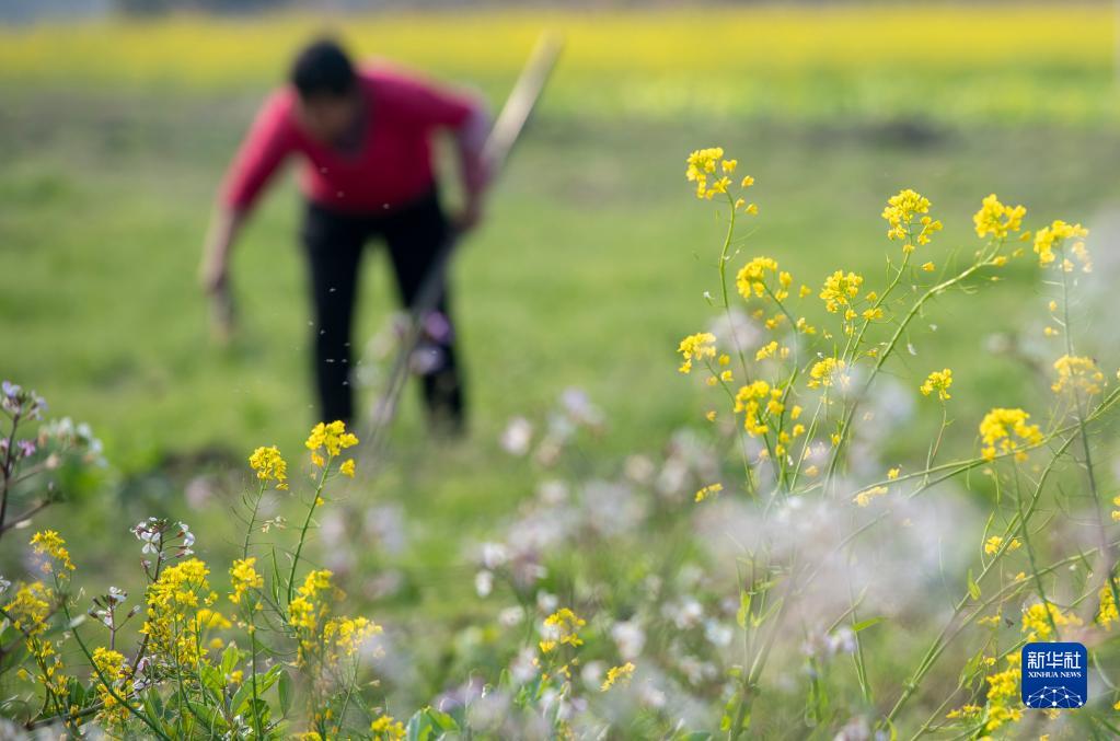 2月28日,在湖南省道縣營江街道白地頭社區,農民在田間勞作。