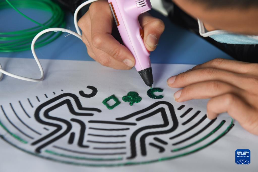 3月1日,城北小學學生學習用3D打印筆繪制立體圖案。