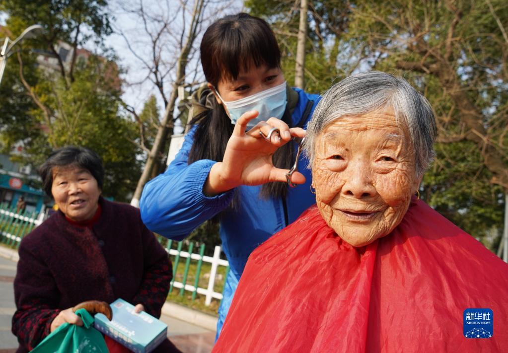 3月3日,在安徽巢湖,志愿者為市民義務理發。