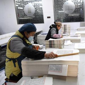 3月3日,工人在涇縣丁家橋鎮(zhèn)一家宣紙企業(yè)內(nèi)制作宣紙線裝書。