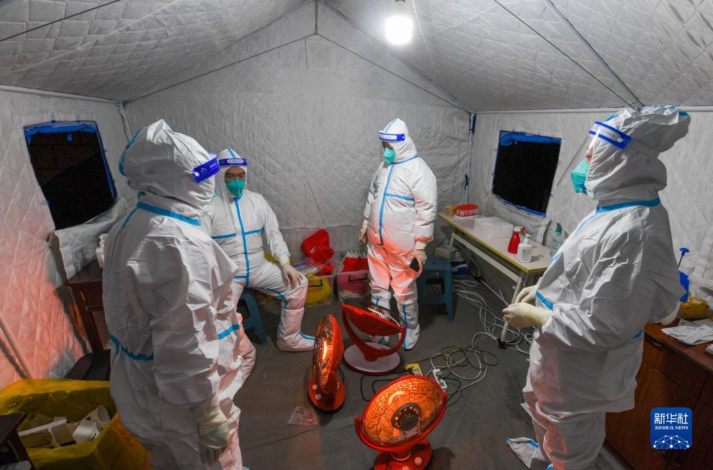 自內(nèi)蒙古呼和浩特市報(bào)告發(fā)生本土新冠肺炎疫情以來(lái),由廣大社區(qū)工作者、醫(yī)務(wù)人員、志愿者組成的抗疫人群體日夜奮戰(zhàn)在基層的臨時(shí)核酸檢測(cè)點(diǎn)。為了保障群眾工作、生活平穩(wěn)有序,他們?cè)诿刻烨宄?點(diǎn)就開始了忙碌的一天。