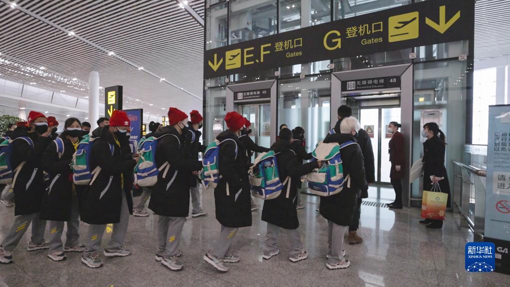 圖為在重慶江北機場,重慶市特殊教育中心揚帆管樂團參演團隊準備乘機前往北京(2月8日攝)。