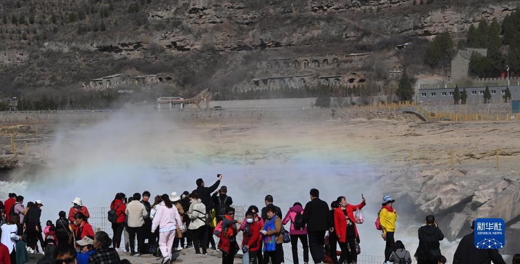 隨著氣溫不斷回升,黃河壺口瀑布水流量明顯增大,在陽光的照射下,飛瀑與彩虹相映成趣,把一幅動靜結合的春天畫卷展現在游客眼前。