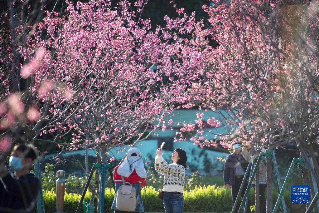 近日,澳門氹仔龍環(huán)葡韻的櫻花盛開,春意盎然。