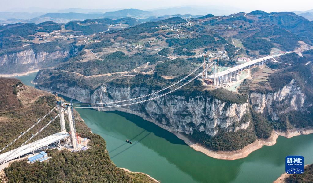 目前,由貴州路橋集團承建的金烽烏江大橋建設進展順利。金烽烏江大橋是貴陽經金沙至古藺(貴金古)高速公路項目的重要控制性工程,橋梁全長1473.5米,預計年底建成通車。