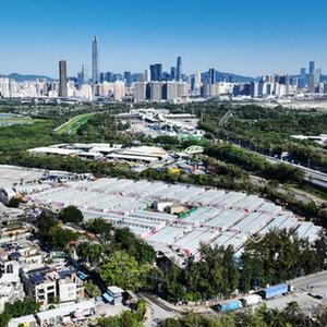 這是3月8日拍攝的香港新田方艙醫(yī)院(無人機照片)。