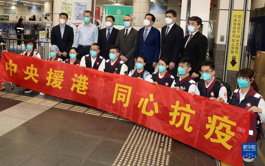 3月14日,香港有關負責人到深圳灣口岸迎接醫療隊的到來。