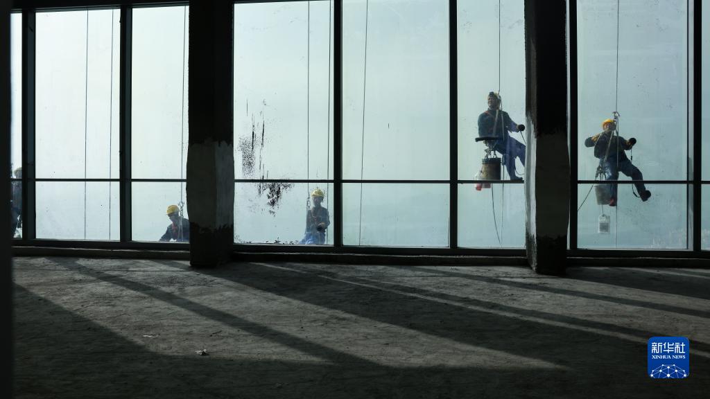 近日,高度335米的貴陽國際貿易中心雙子塔迎來今年的首次清洗。8名“蜘蛛人”從塔巔垂直而下開展高空作業,將耗時20天左右才能完成清洗。
