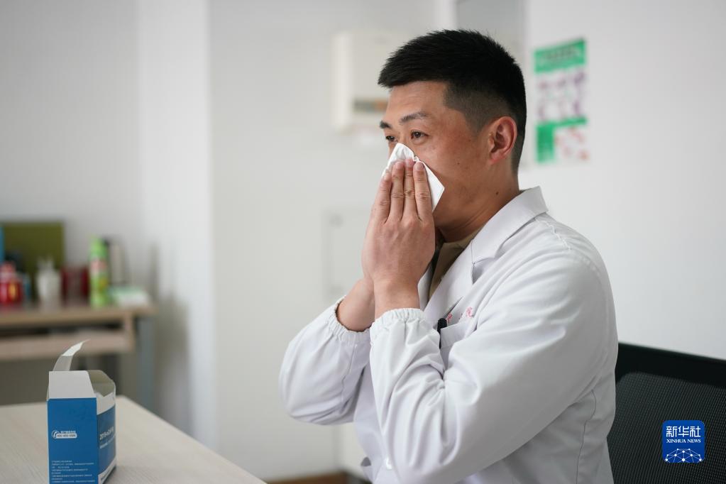 3月15日,在東南大學附屬中大醫(yī)院,張臣在樣本采集前擤鼻涕。