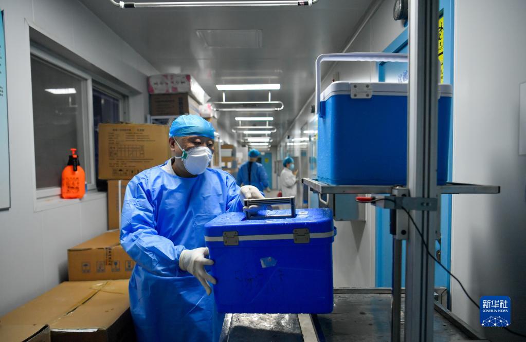 3月19日晚,位于天津市第一醫院的天津市河北區城市核酸檢測基地內燈火通明,工作人員緊張而有序地檢測著當日該區三個街道的核酸采樣樣本及復檢樣本。