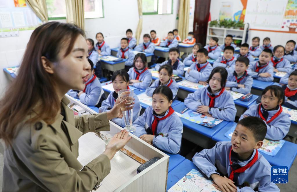 3月21日,四川省華鎣市雙河三小五年級(jí)四班的老師在給學(xué)生講解節(jié)約用水知識(shí)。