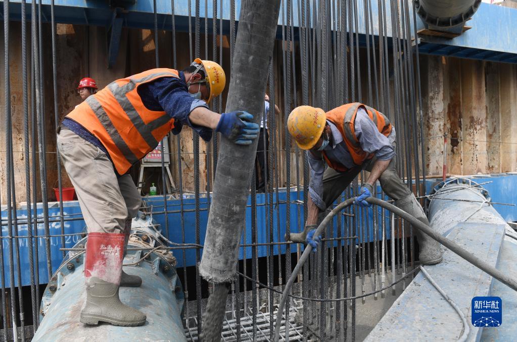 當日,在廣西上林至橫州高速公路建設施工現(xiàn)場,工人們加班加點完成控制性工程——西津郁江特大橋水中承臺的澆筑作業(yè)。