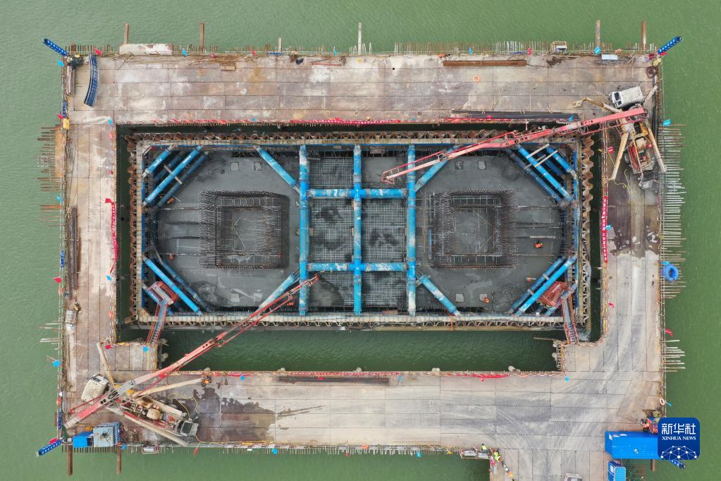 當(dāng)日,在廣西上林至橫州高速公路建設(shè)施工現(xiàn)場(chǎng),工人們加班加點(diǎn)完成控制性工程——西津郁江特大橋水中承臺(tái)的澆筑作業(yè)。