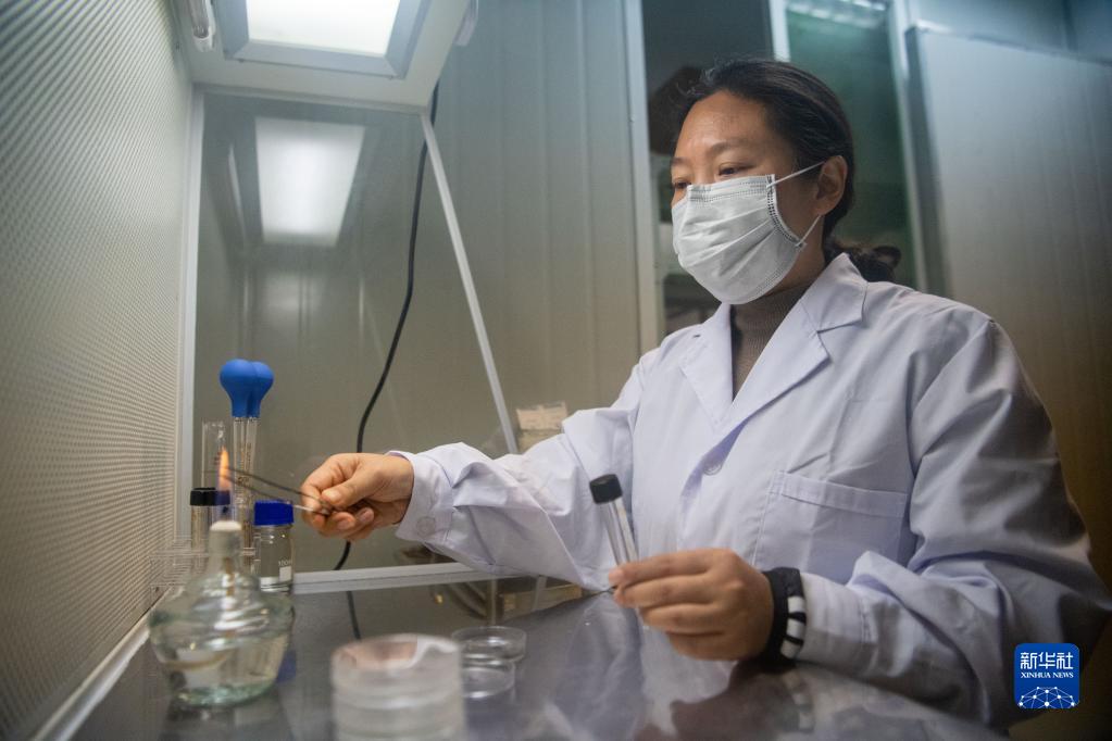 3月21日,重慶市農科院研究員黃桃翠在油菜組培室進行實驗。