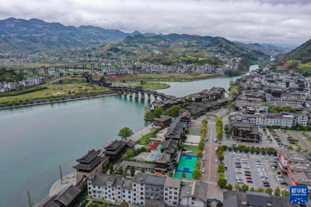 這是3月22日拍攝的重慶市黔江區濯水古鎮景區風光(無人機照片)。