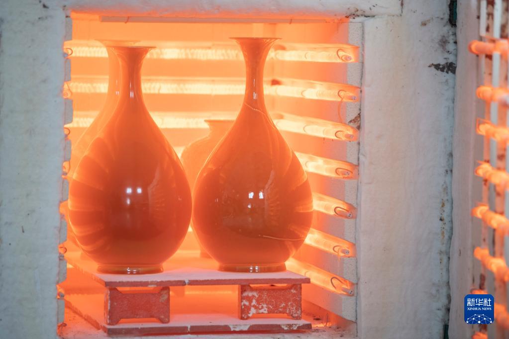 這是在山西省陽城縣沙坡村拍攝的燒制中的琺華(3月24日攝)。新華社記者 楊晨光 攝