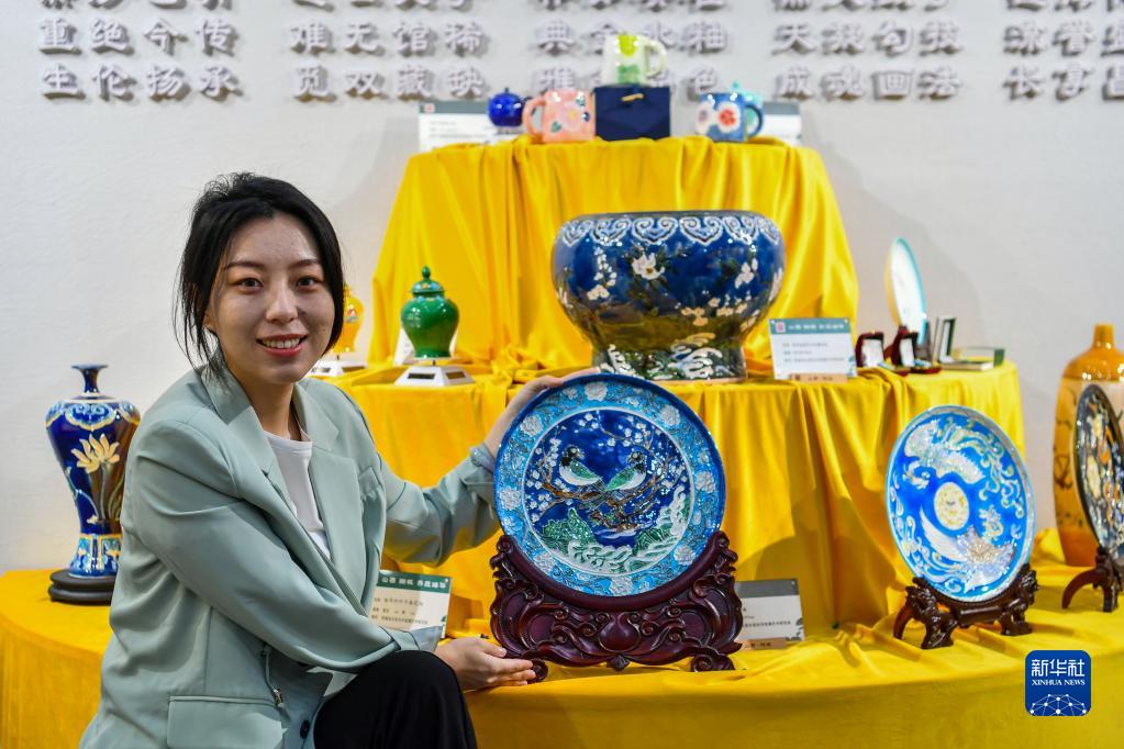 3月24日,在山西省陽城縣沙坡村,喬琳展示自己制作的琺華。新華社記者 曹陽 攝