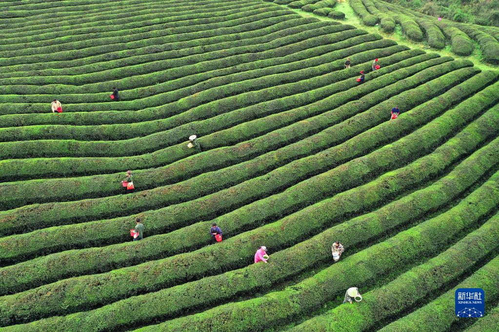 3月24日,在江西省宜春市上高縣新界埠鎮一茶場,村民采摘明前茶。
