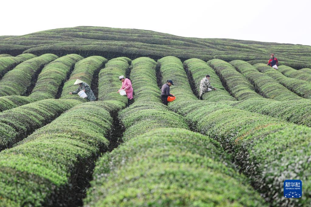 3月24日,在江西省宜春市上高縣新界埠鎮一茶場,村民采摘明前茶。
