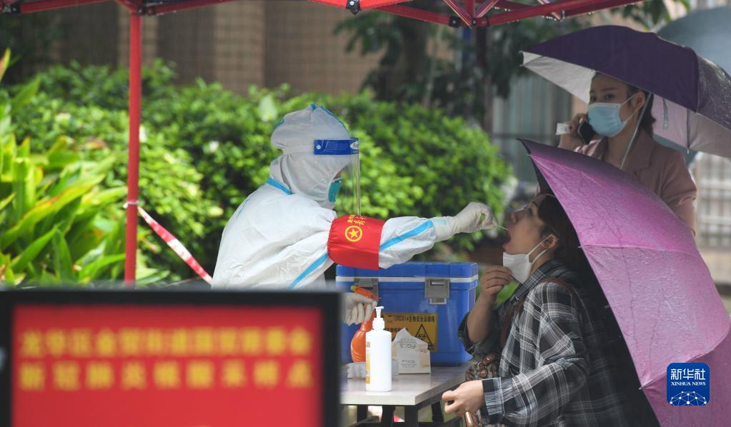4月1日,在海口市龍華區金貿街道國貿社區新冠肺炎核酸采樣點,居民接受核酸采樣。