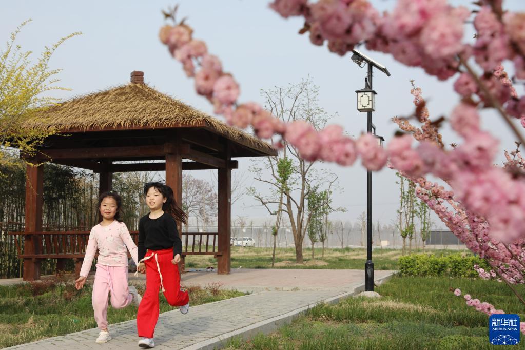 4月4日,小朋友們?cè)诤幽鲜〗棺魇袦乜h黃河灘區(qū)一處景點(diǎn)玩耍。