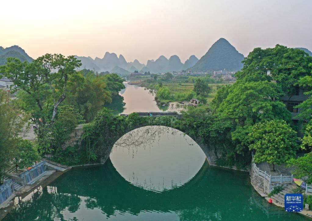 這是廣西陽朔遇龍河沿岸景色(4月11日攝,無人機照片)。