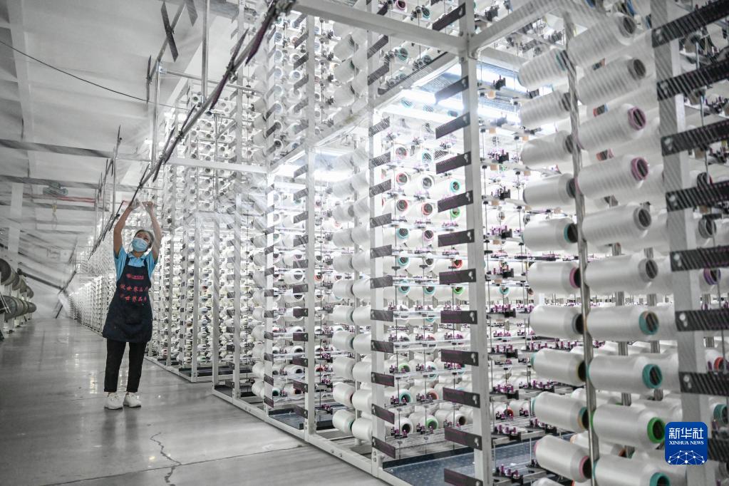 4月12日,在福建泉州石獅市的一家紡織企業,工人在工廠里忙碌。