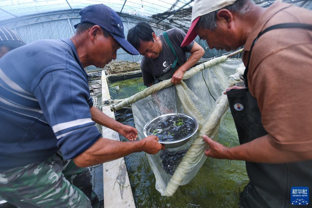 4月27日,在湖州市吳興區(qū)東林鎮(zhèn)保健村湖旺水產(chǎn)基地,工作人員從育苗池內(nèi)打撈魚苗。 據(jù)悉,該水產(chǎn)基地規(guī)模達(dá)200畝,目前每日能孵化1000多萬尾魚苗,日銷售額8萬余元。