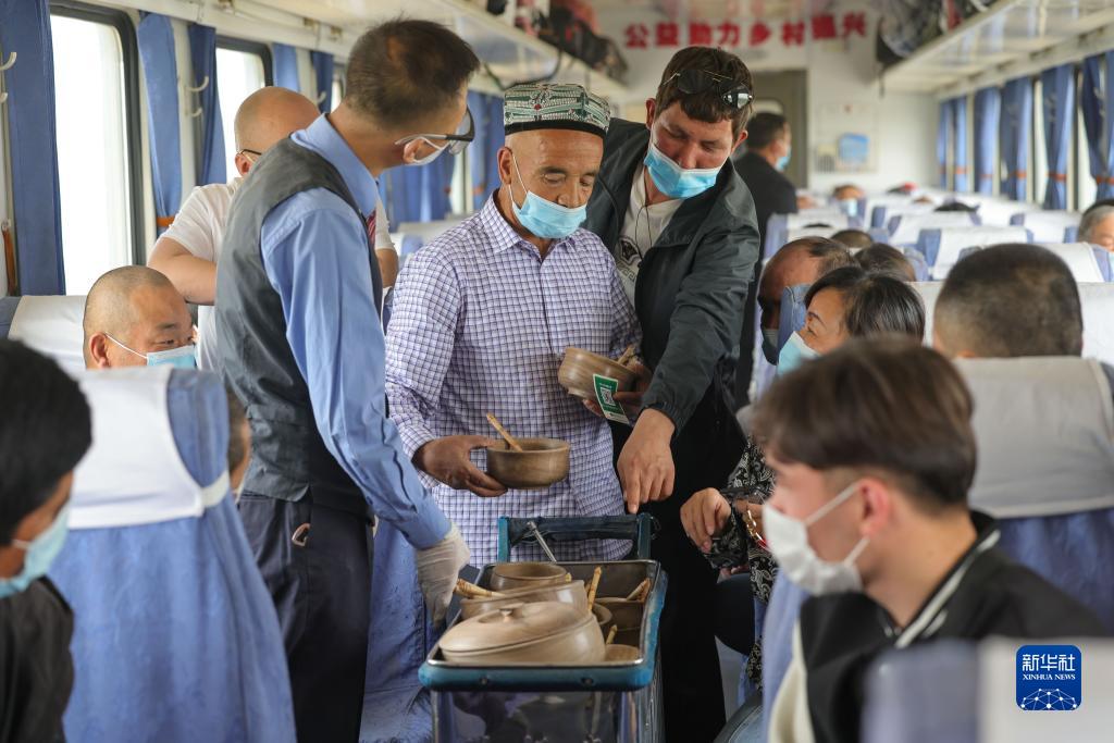 趕集求醫、探親上學、外出務工……這趟公益性“慢火車”不僅是連接南北疆的“便民車”,也是周圍沿線百姓的“致富車”。火車上的“流動巴扎”為當地農戶搭建了銷售平臺,保障當地特色產品“走出去”。