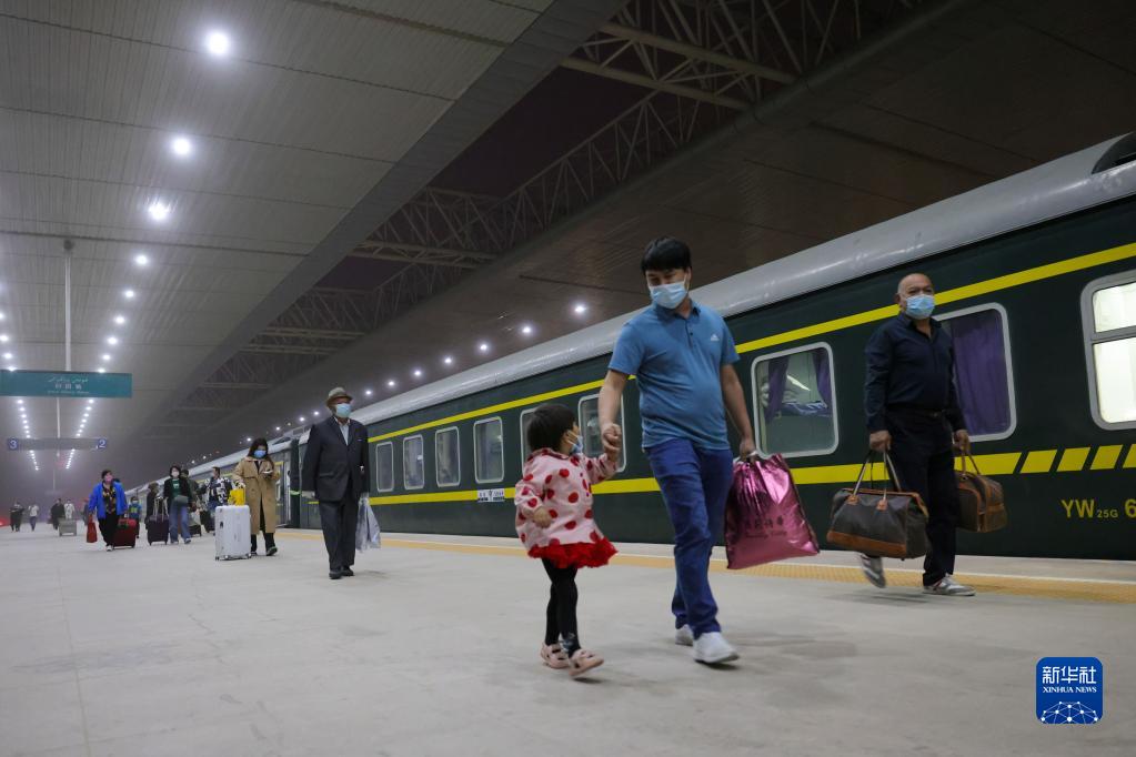 旅客乘坐“和田玉龍號”列車到達新疆和田火車站(4月27日攝)。