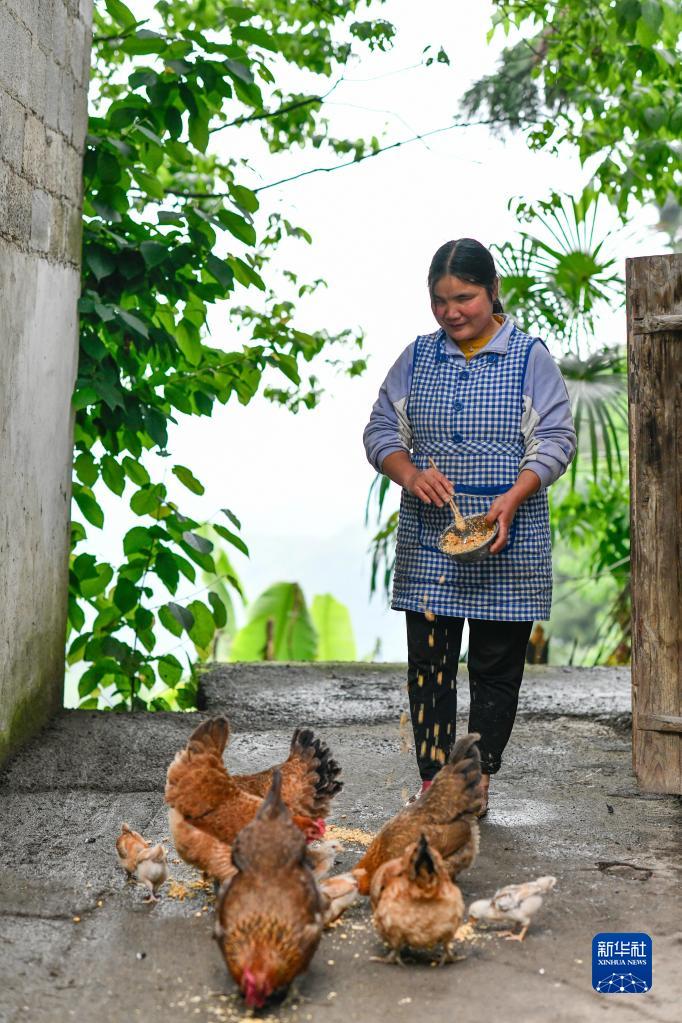 簡琴在家里喂雞(5月12日攝)。