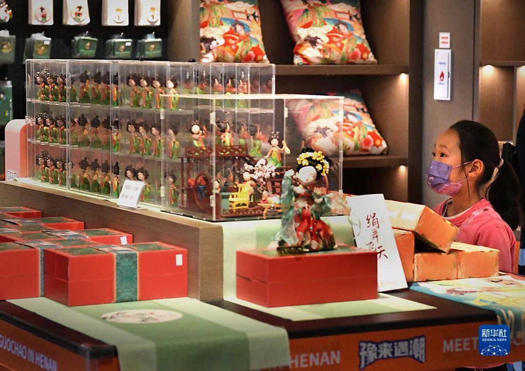 5月17日,一名小朋友在河南博物院文創(chuàng)商店內(nèi)挑選文創(chuàng)產(chǎn)品。