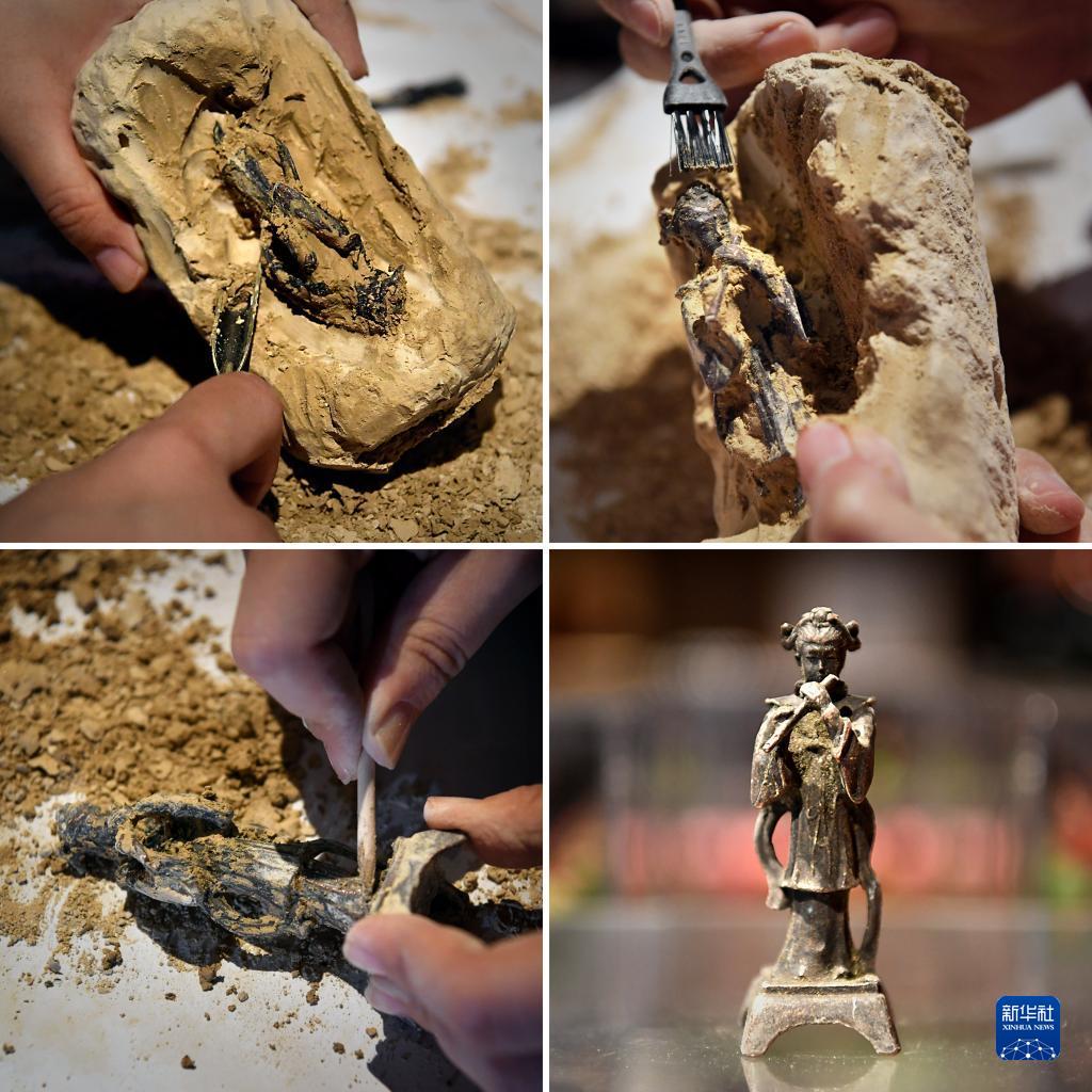 這是河南博物院推出的考古盲盒的“挖寶”過程(拼版照片,5月17日攝)。