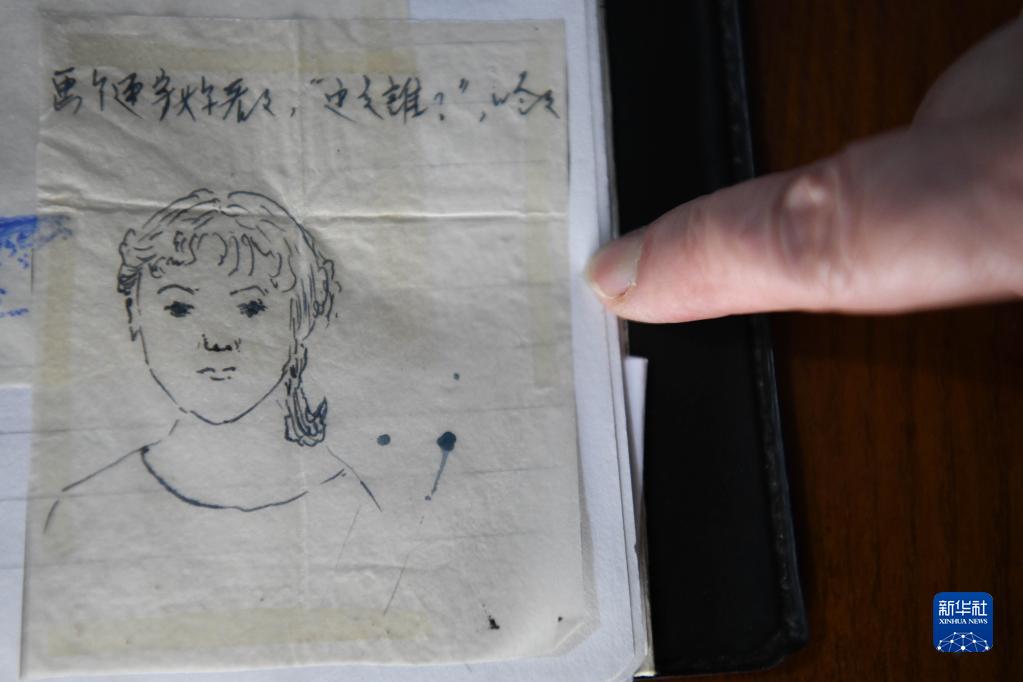 這是丈夫徐國誠為張愛蘭畫的一幅人物速寫(5月18日攝)。