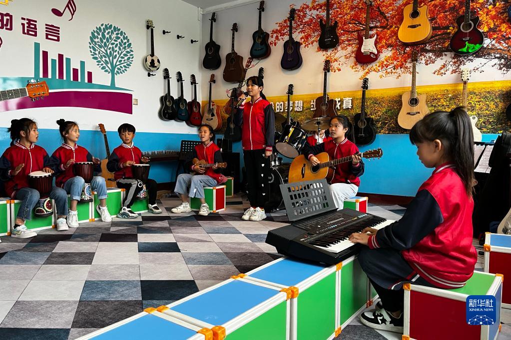 老師們利用中午午休和社團活動課的時間,教孩子們合唱技巧、樂器演奏等音樂相關(guān)知識,并把流行歌曲的歌詞改編成適合兒童唱的,再把歌曲教給孩子們。