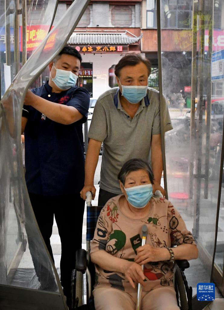 張占領(lǐng)幫助顧客進(jìn)入店鋪(5月31日攝)。