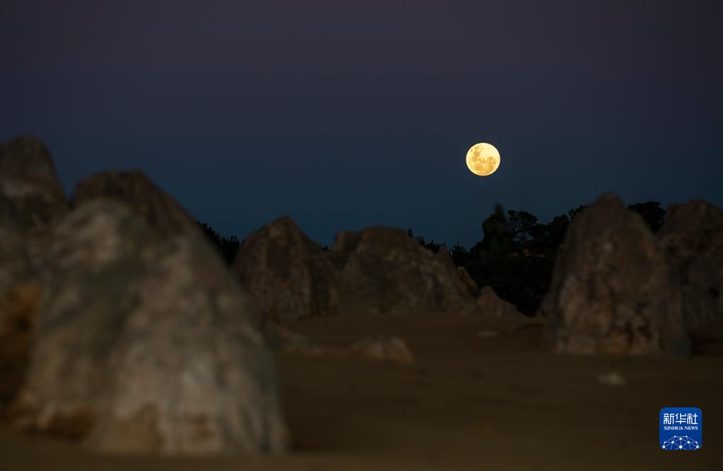這是6月14日在位于澳大利亞西澳大利亞州的尖峰石陣拍攝的“超級月亮”。